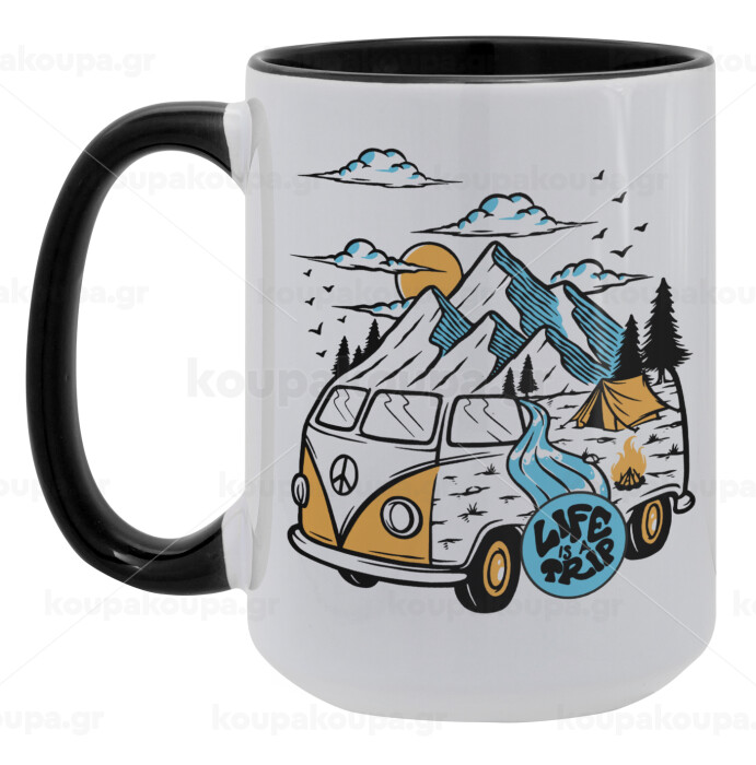 Life is a trip, Κούπα Mega 15oz, κεραμική Μαύρη, 450ml
