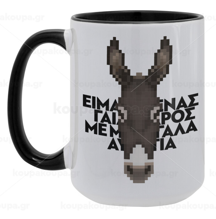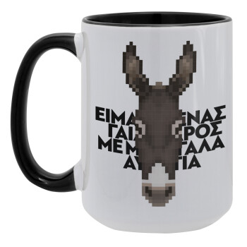 Είμαι ένας γάιδαρος με μεγάλα αυτιά., Κούπα Mega 15oz, κεραμική Μαύρη, 450ml
