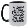 A smile is the prettiest thing you can wear, Κούπα Mega 15oz, κεραμική Μαύρη, 450ml