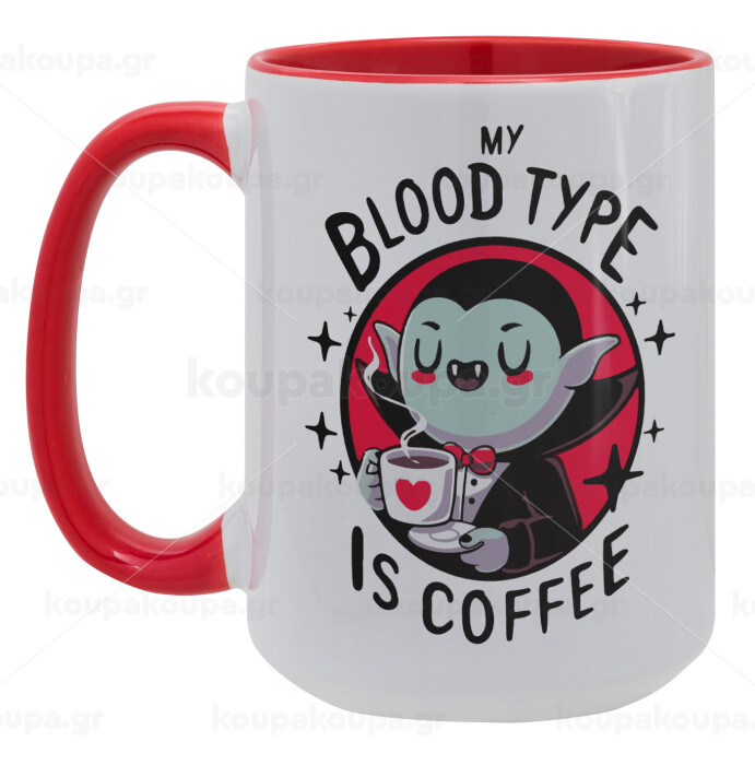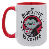 My blood type is coffee, Κούπα Mega 15oz, κεραμική Κόκκινη, 450ml