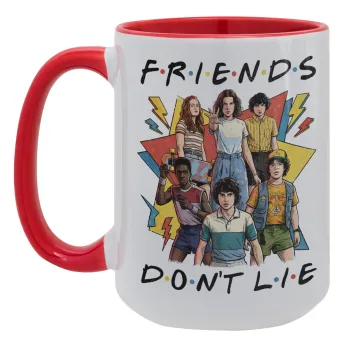 Friends Dont Lie, Stranger Things, Κούπα Mega 15oz, κεραμική Κόκκινη, 450ml