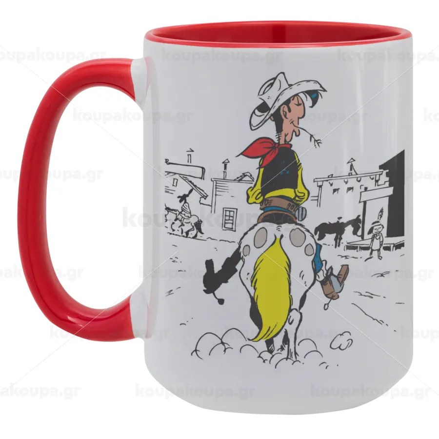 Λούκυ Λουκ comic, Κούπα Mega 15oz, κεραμική Κόκκινη, 450ml