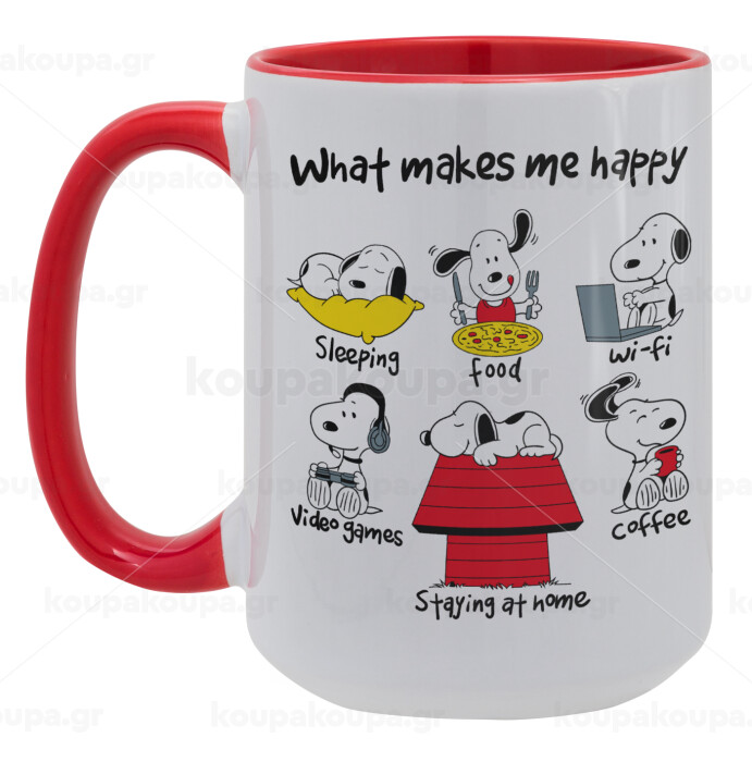 Snoopy what makes my happy, Κούπα Mega 15oz, κεραμική Κόκκινη, 450ml