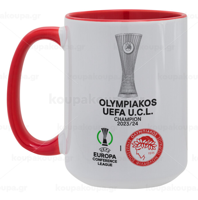 Ολυμπιακός νικητής UEFA Europa Conference League Champion 2023/24, Κούπα Mega 15oz, κεραμική Κόκκινη, 450ml