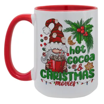 Hot cocoa and Christmas movies, Κούπα Mega 15oz, κεραμική Κόκκινη, 450ml