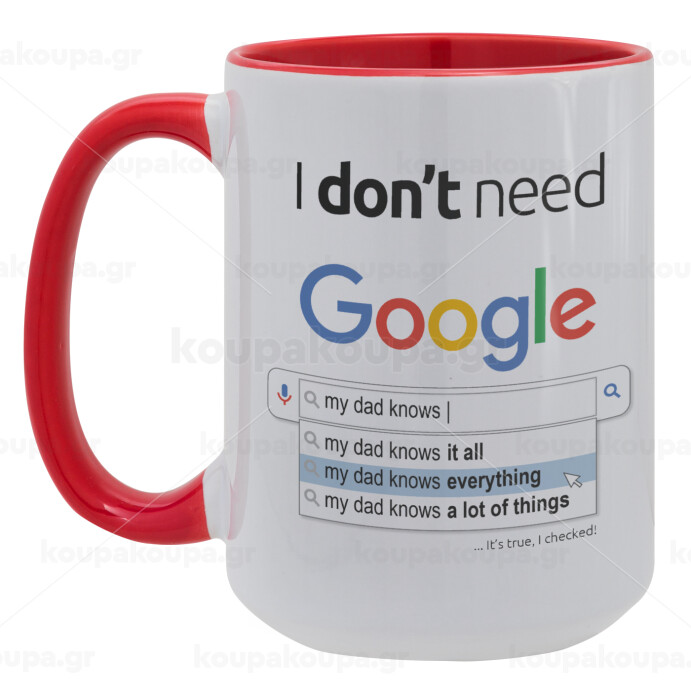 I don't need Google my dad..., Κούπα Mega 15oz, κεραμική Κόκκινη, 450ml