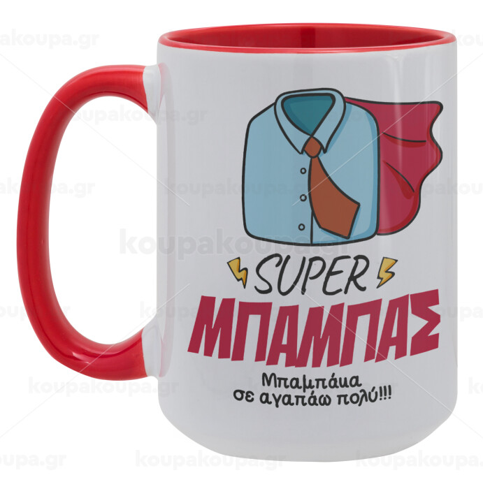 SUPER ΜΠΑΜΠΑΣ, Κούπα Mega 15oz, κεραμική Κόκκινη, 450ml