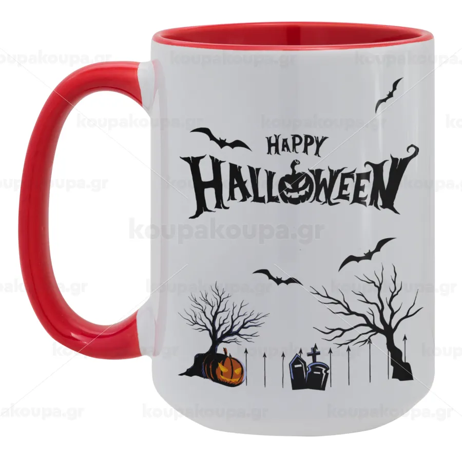 Happy Halloween cemetery, Κούπα Mega 15oz, κεραμική Κόκκινη, 450ml