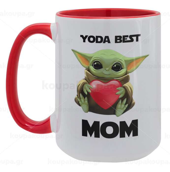 Yoda Best mom, Κούπα Mega 15oz, κεραμική Κόκκινη, 450ml