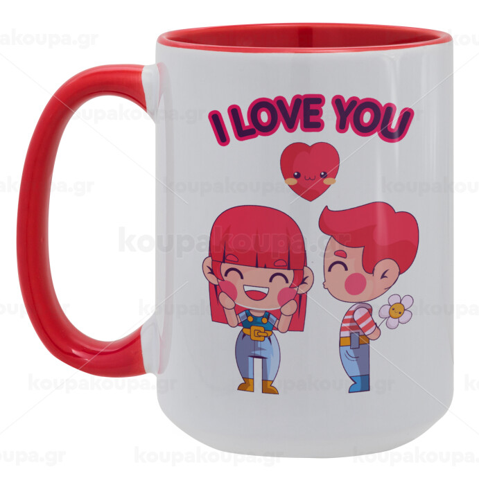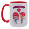 Couple, I love you, Κούπα Mega 15oz, κεραμική Κόκκινη, 450ml