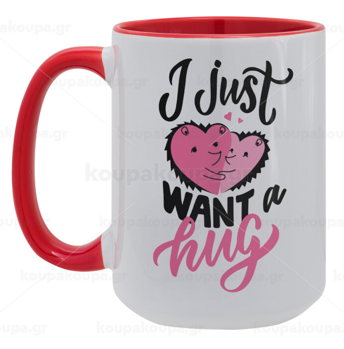 I Just want a hug!, Κούπα Mega 15oz, κεραμική Κόκκινη, 450ml