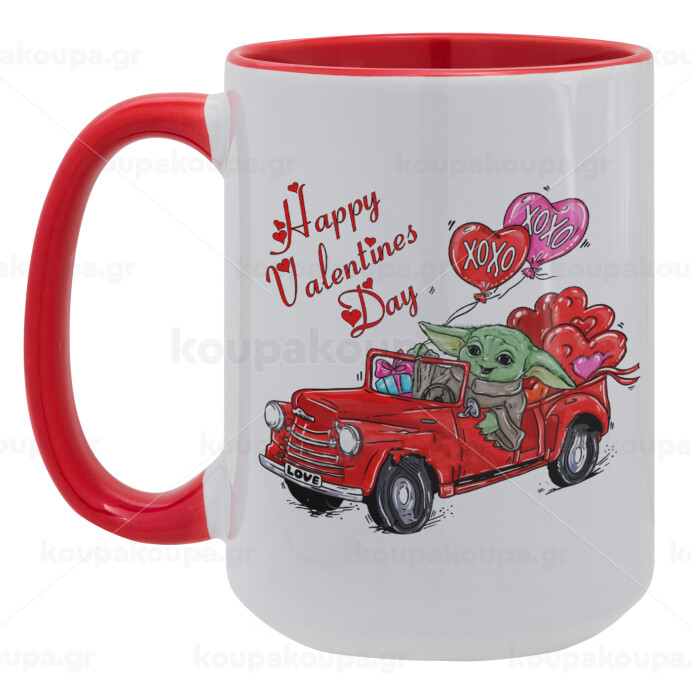 Yoda, happy valentines day (xoxo), Κούπα Mega 15oz, κεραμική Κόκκινη, 450ml
