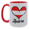 Austria flag, Κούπα Mega 15oz, κεραμική Κόκκινη, 450ml