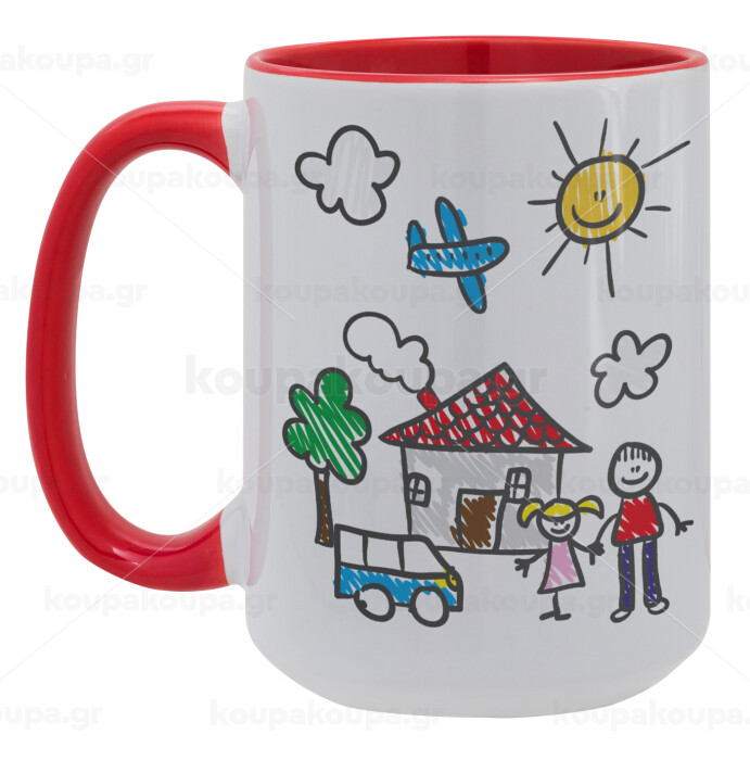 Παιδική ζωγραφιά, Κούπα Mega 15oz, κεραμική Κόκκινη, 450ml