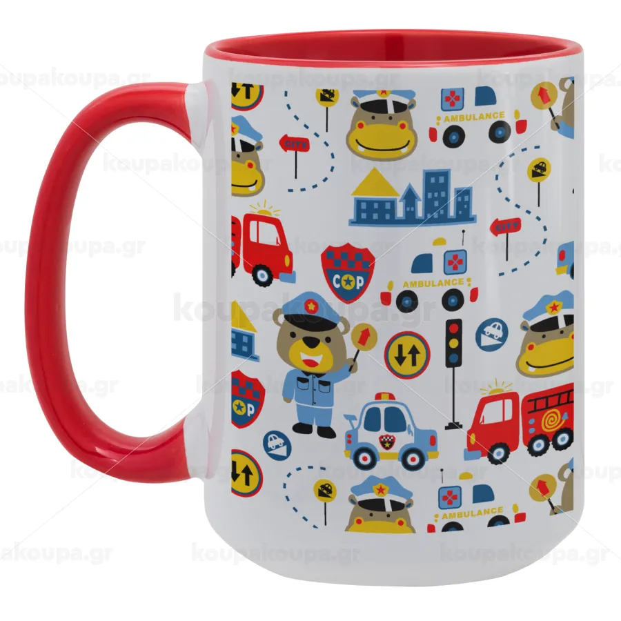Rescue team cartoon, Κούπα Mega 15oz, κεραμική Κόκκινη, 450ml