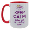 KEEP CALM baby girl is coming soon!!!, Κούπα Mega 15oz, κεραμική Κόκκινη, 450ml