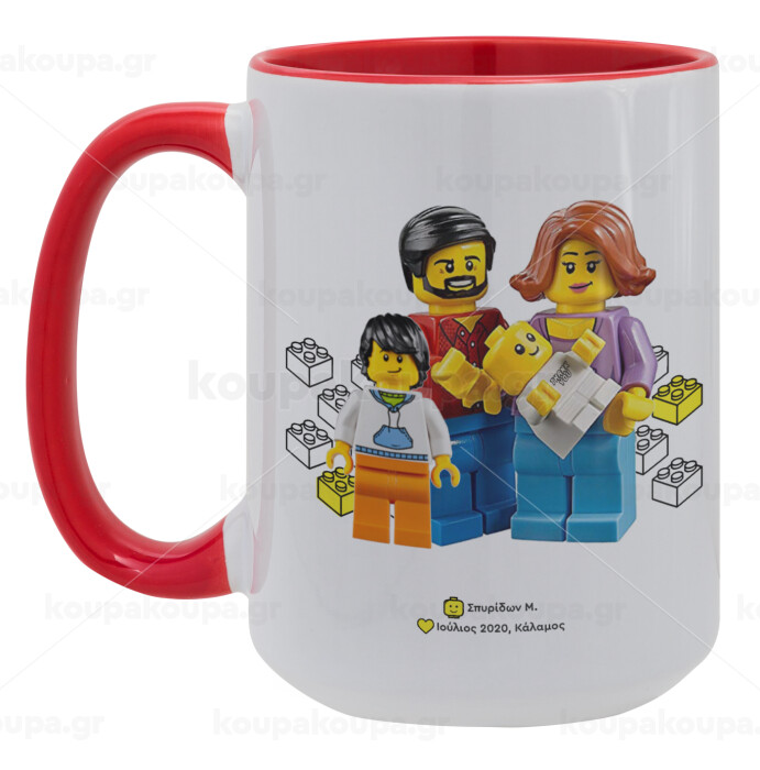 Τύπου Lego family, Κούπα Mega 15oz, κεραμική Κόκκινη, 450ml