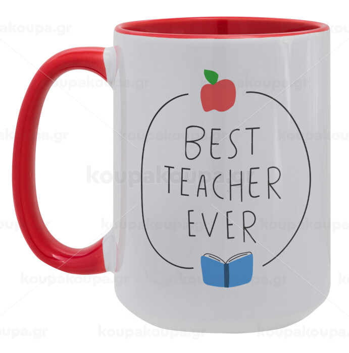 Best teacher ever, Κούπα Mega 15oz, κεραμική Κόκκινη, 450ml