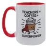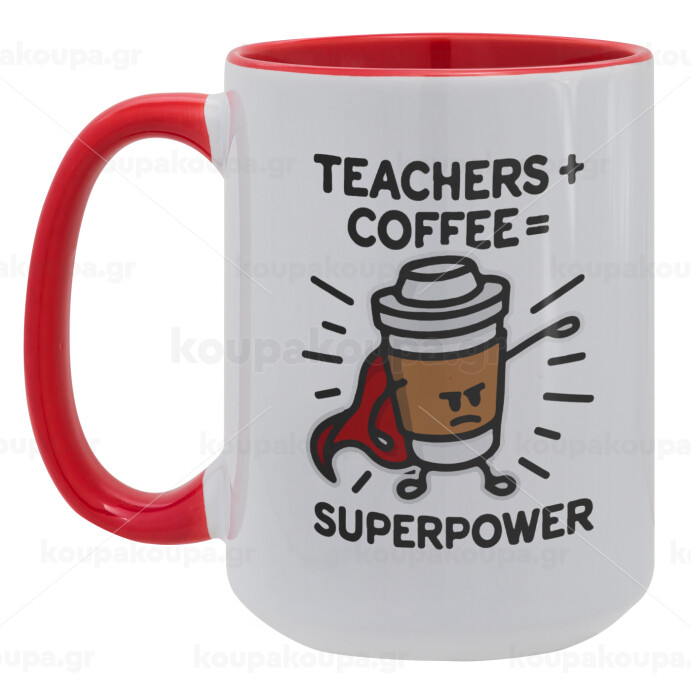 Teacher Coffee Super Power, Κούπα Mega 15oz, κεραμική Κόκκινη, 450ml
