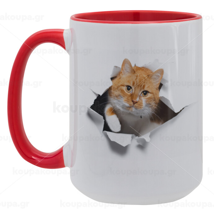 Cat cracked, Κούπα Mega 15oz, κεραμική Κόκκινη, 450ml