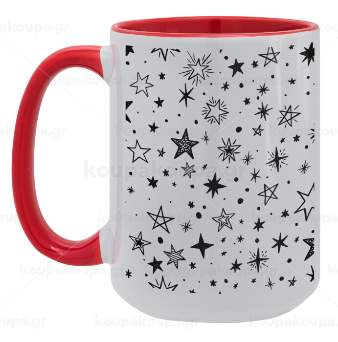 Doodle Stars, Κούπα Mega 15oz, κεραμική Κόκκινη, 450ml