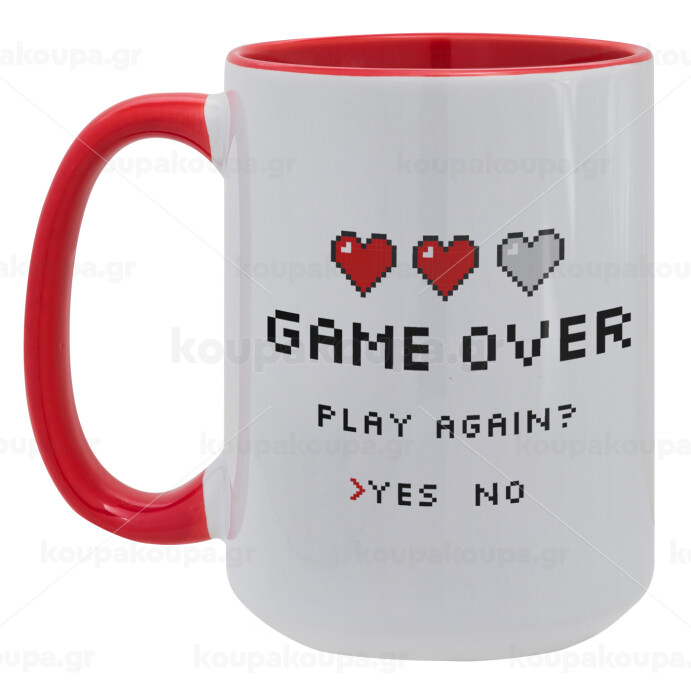 GAME OVER, Play again? YES - NO, Κούπα Mega 15oz, κεραμική Κόκκινη, 450ml