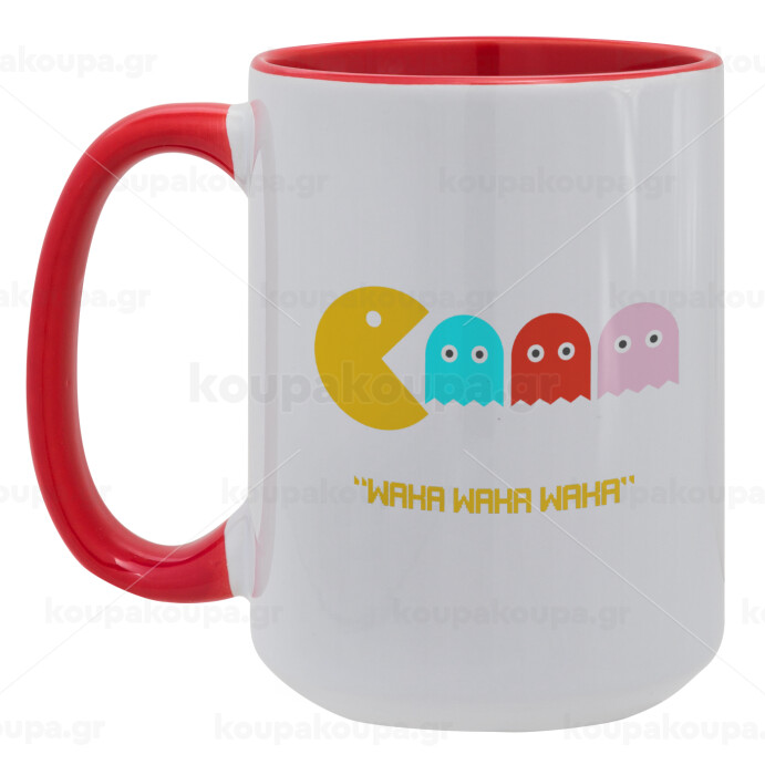 Pacman waka waka waka, Κούπα Mega 15oz, κεραμική Κόκκινη, 450ml