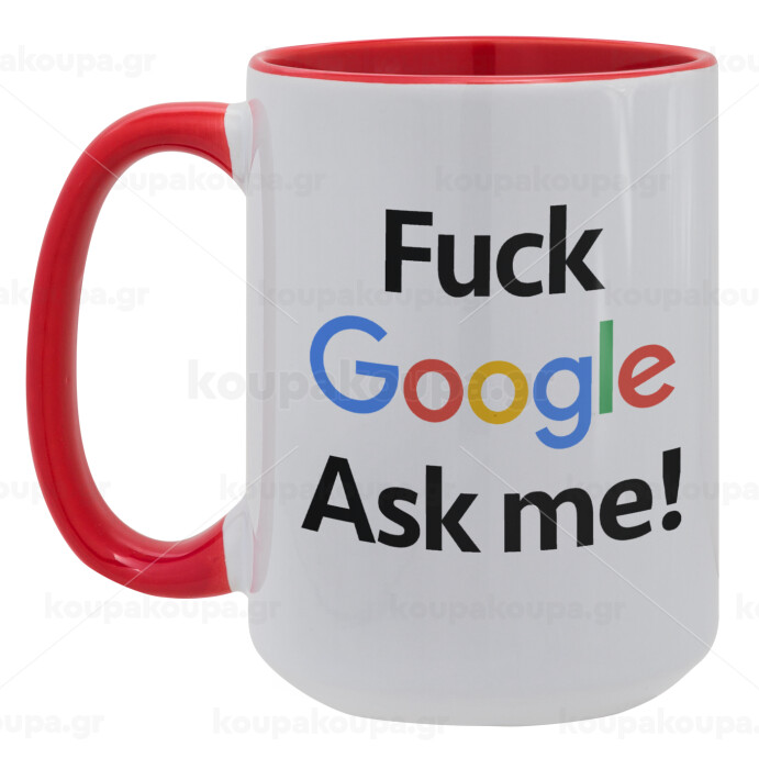 Fuck Google, Ask me!, Κούπα Mega 15oz, κεραμική Κόκκινη, 450ml