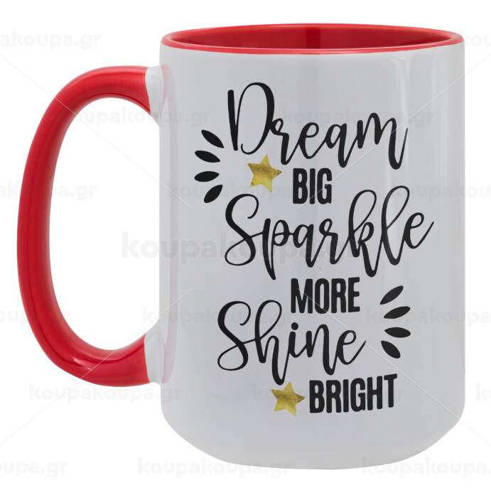 Dream big, Sparkle more, Shine bright, Κούπα Mega 15oz, κεραμική Κόκκινη, 450ml
