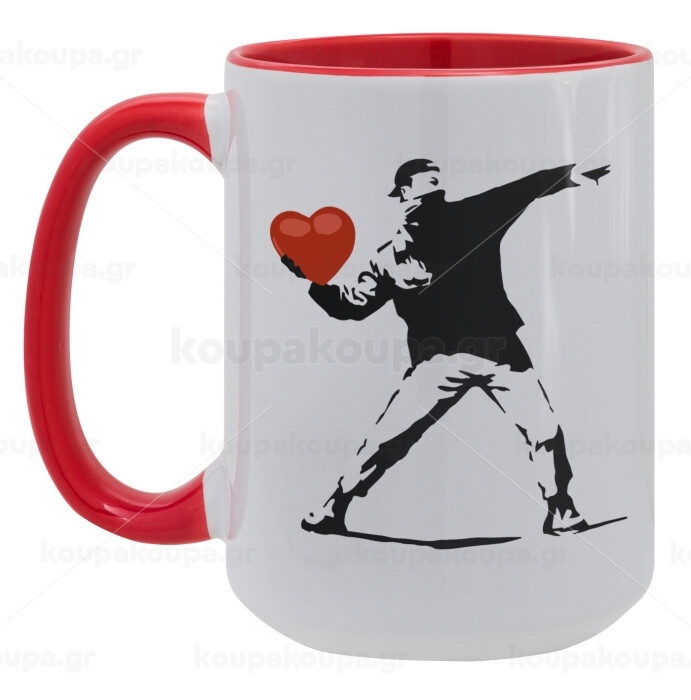 Banksy (The heart thrower), Κούπα Mega 15oz, κεραμική Κόκκινη, 450ml