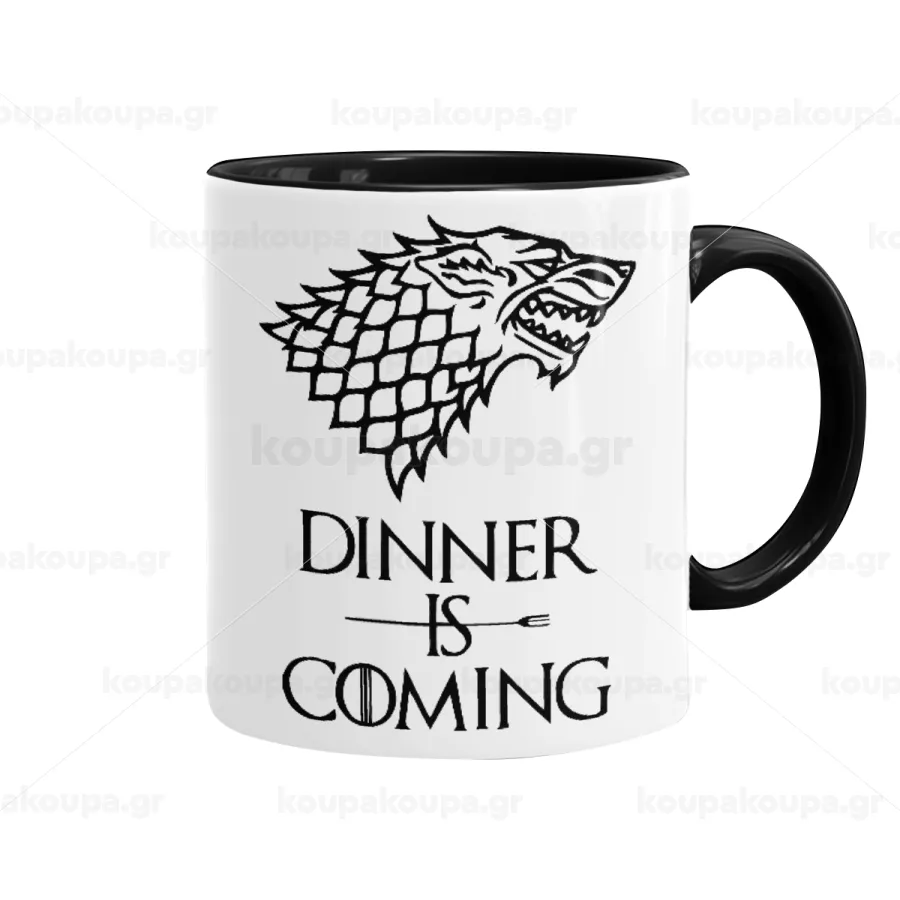 Dinner is coming (GOT), Κούπα χρωματιστή μαύρη, κεραμική, 330ml