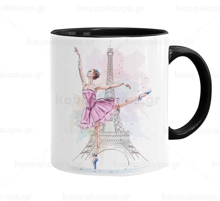 Ballerina in Paris, Κούπα χρωματιστή μαύρη, κεραμική, 330ml