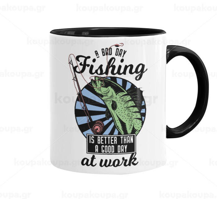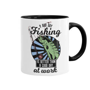 A bad day FISHING is better than a good day at work, Κούπα χρωματιστή μαύρη, κεραμική, 330ml