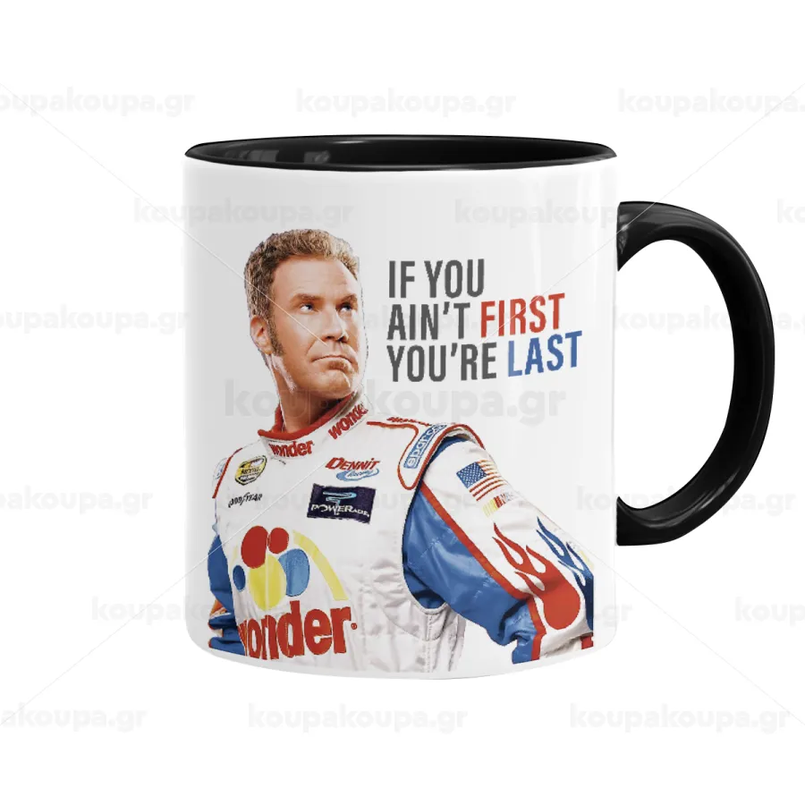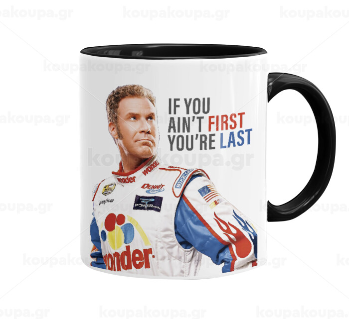 If You Ain't First You're Last Ricky Bobby, Talladega Nights, Κούπα χρωματιστή μαύρη, κεραμική, 330ml