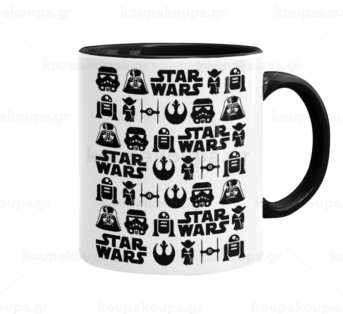 Star Wars Pattern, Κούπα χρωματιστή μαύρη, κεραμική, 330ml