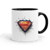 Superman cracked, Κούπα χρωματιστή μαύρη, κεραμική, 330ml
