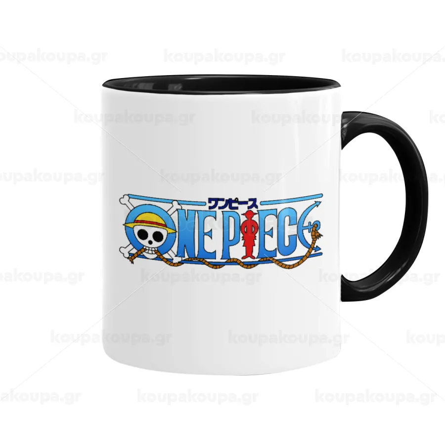 Onepiece logo, Κούπα χρωματιστή μαύρη, κεραμική, 330ml