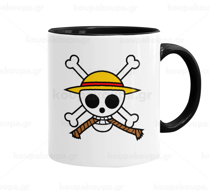 Onepiece skull, Κούπα χρωματιστή μαύρη, κεραμική, 330ml