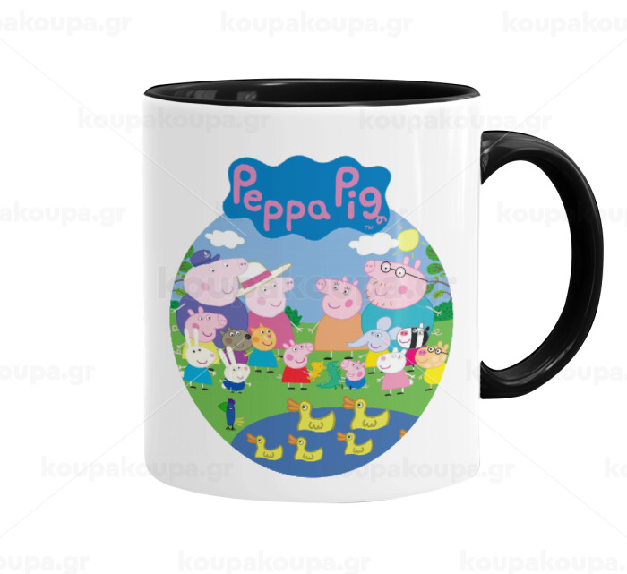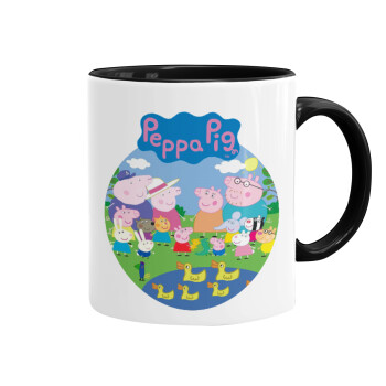 Peppa pig Family, Κούπα χρωματιστή μαύρη, κεραμική, 330ml