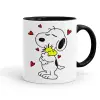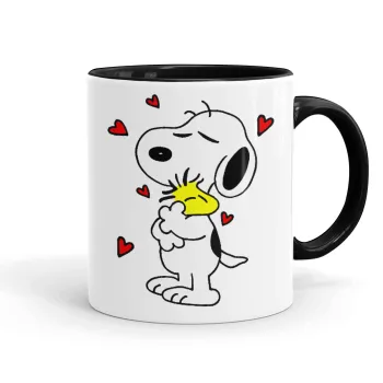 Snoopy Love, Κούπα χρωματιστή μαύρη, κεραμική, 330ml