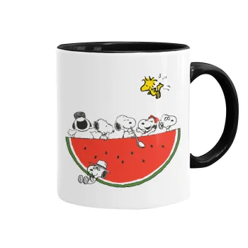 Snoopy summer, Κούπα χρωματιστή μαύρη, κεραμική, 330ml
