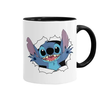 Stitch hello!!!, Κούπα χρωματιστή μαύρη, κεραμική, 330ml