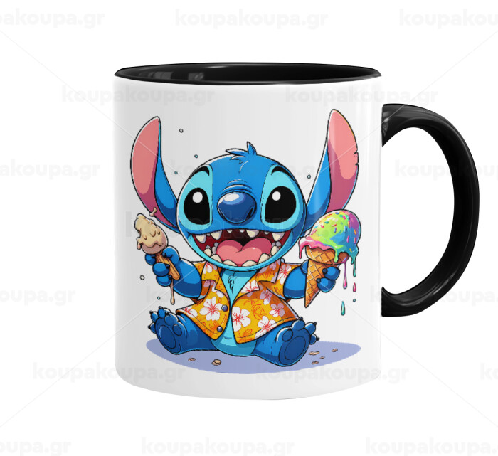 Stitch Ice cream, Κούπα χρωματιστή μαύρη, κεραμική, 330ml
