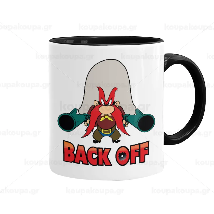 Yosemite Sam Back OFF, Κούπα χρωματιστή μαύρη, κεραμική, 330ml