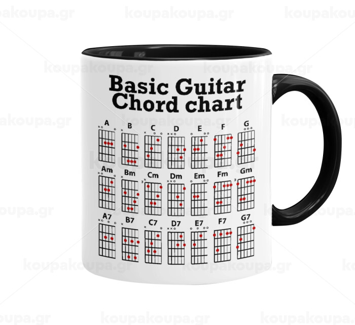 Συγχορδίες κιθάρας, Κούπα χρωματιστή μαύρη, κεραμική, 330ml