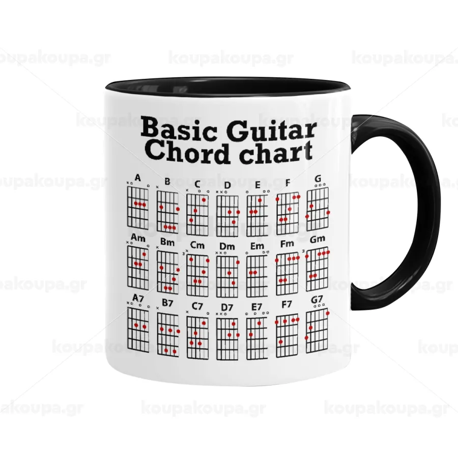 Συγχορδίες κιθάρας, Κούπα χρωματιστή μαύρη, κεραμική, 330ml