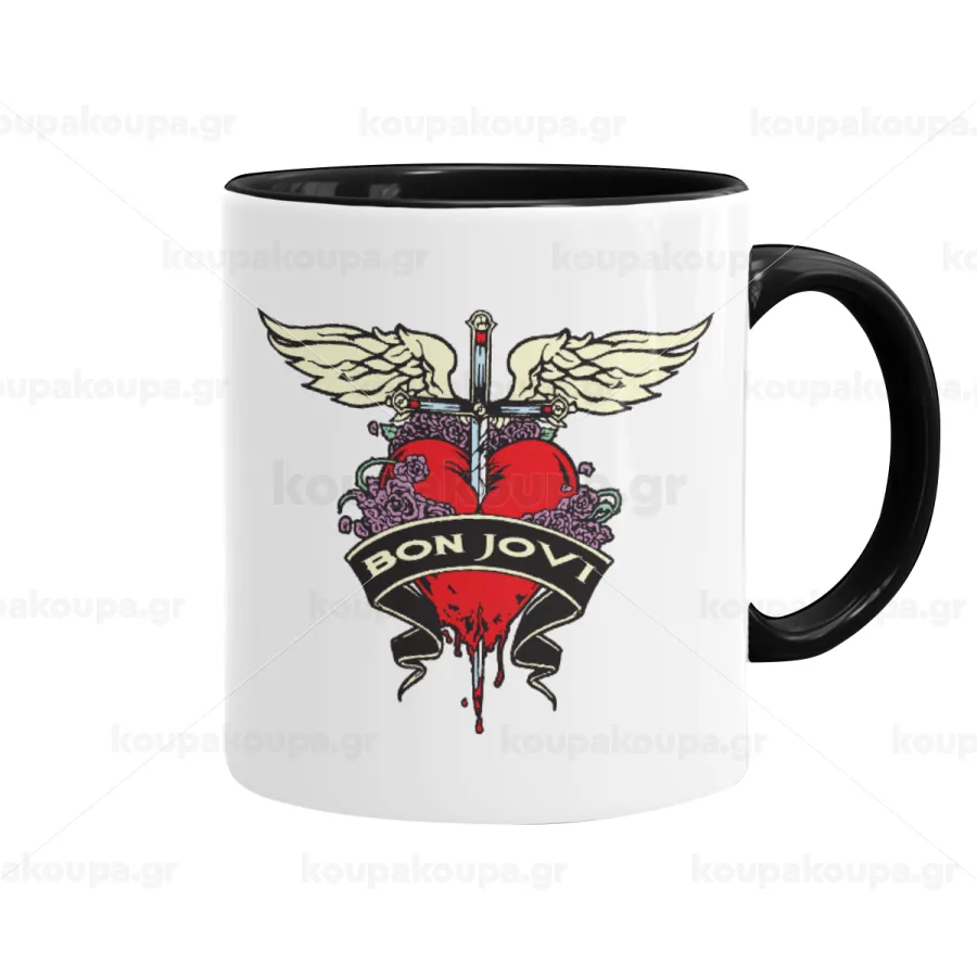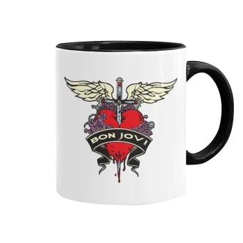 Bon Jovi, Κούπα χρωματιστή μαύρη, κεραμική, 330ml