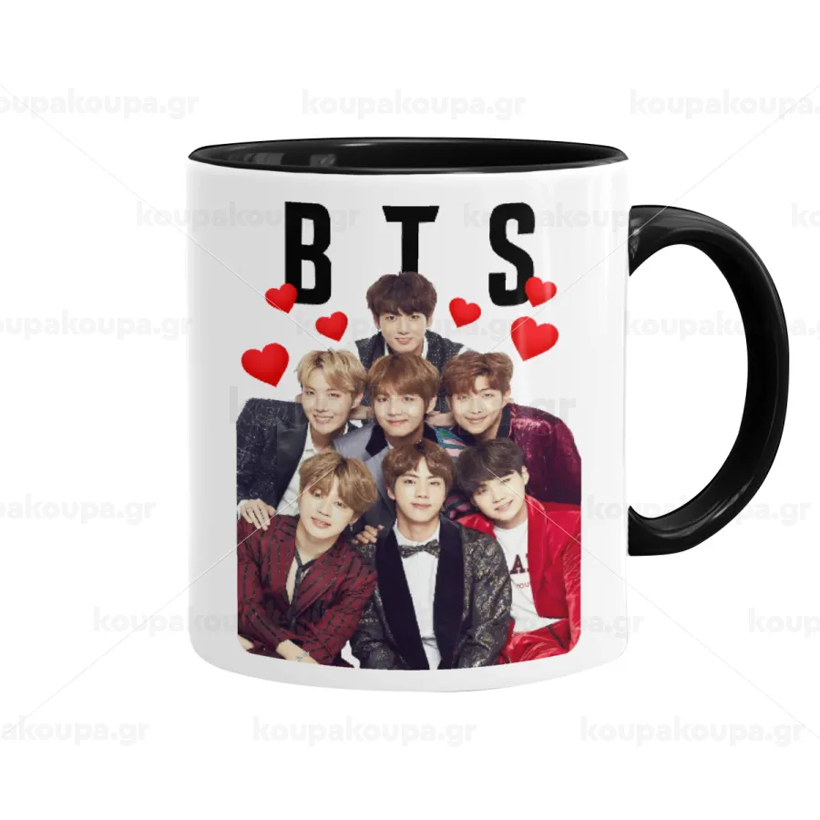 BTS hearts, Κούπα χρωματιστή μαύρη, κεραμική, 330ml