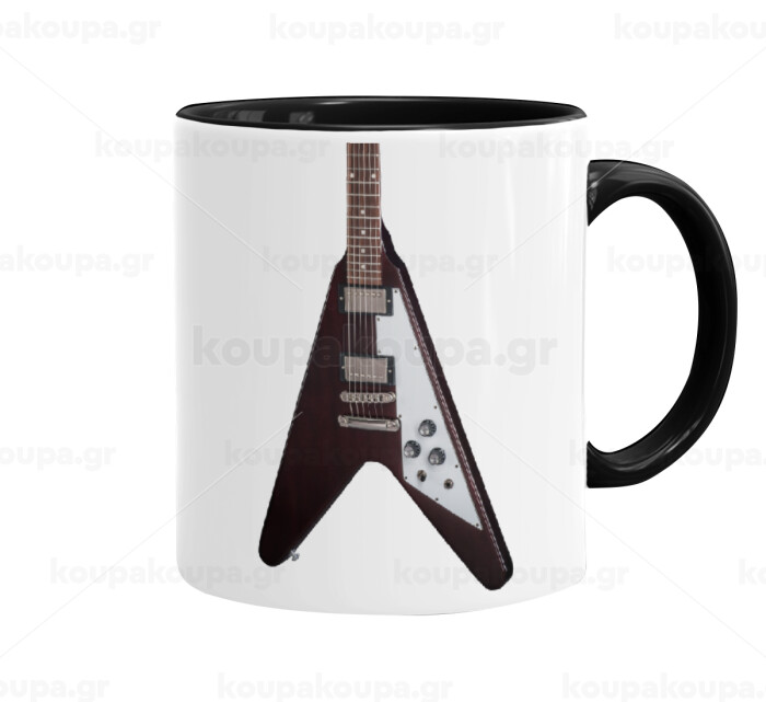 Guitar flying V, Κούπα χρωματιστή μαύρη, κεραμική, 330ml