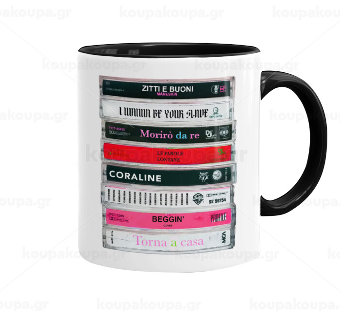 Maneskin Cassette, Κούπα χρωματιστή μαύρη, κεραμική, 330ml